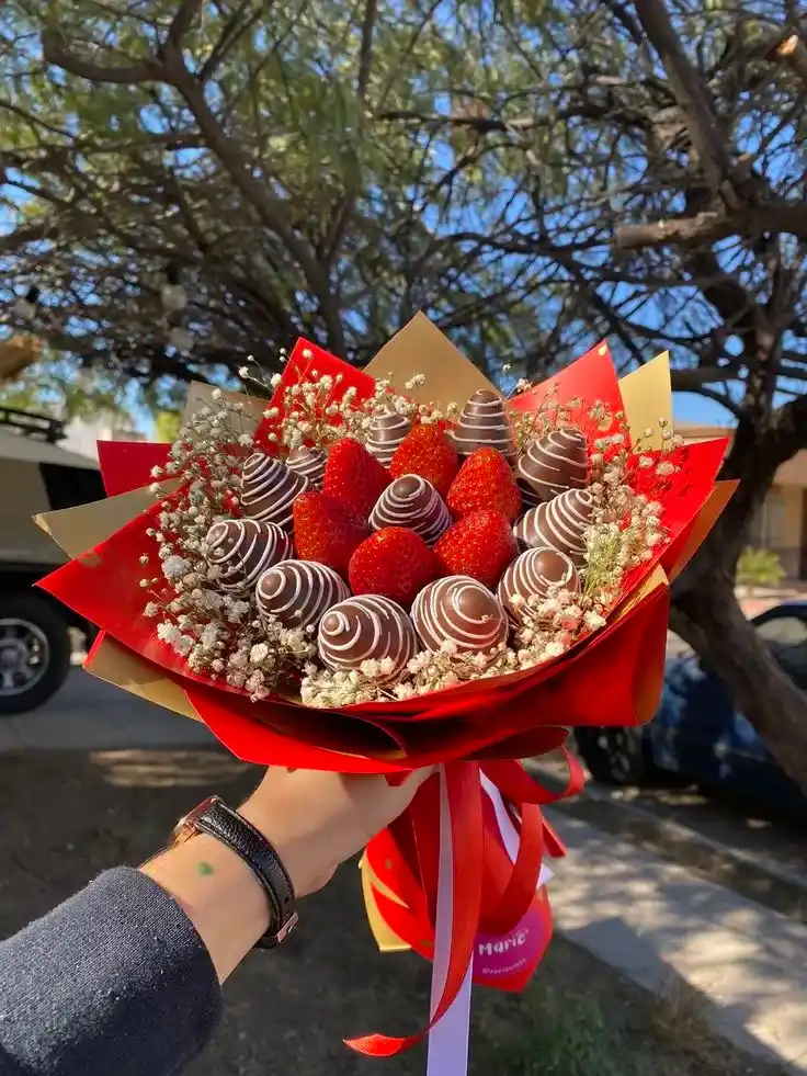 Ramos de flores con Fresas cubiertas de chocolate decoradas